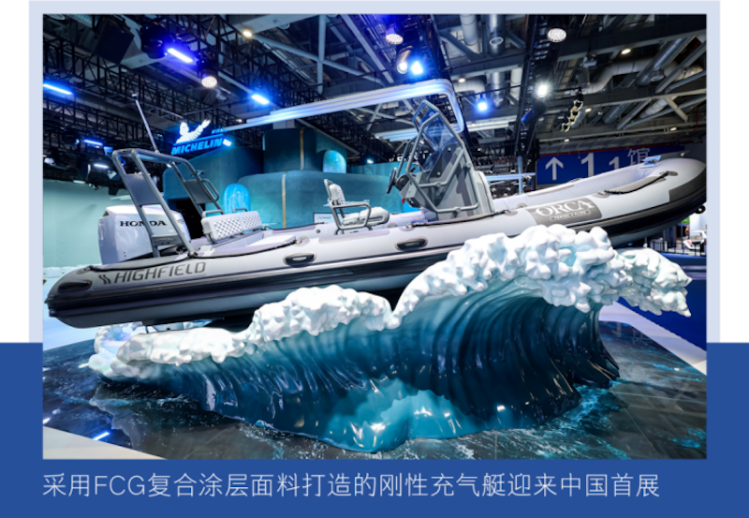 在本届进博会,米其林携多款重磅产品集中亮相,全面展示不止于道路的多元创新版图。凭借在复合物领域的专知积淀,采用米其林旗下Flexible Composite Group(FCG)复合涂层面料打造的刚性充气艇首次在华亮相,凭借超强撕裂强度、出色的耐磨性能、优异的抗紫外线、抗老化和耐水解性能,以及长期的稳定气密性,FCG复合涂层面料能够从容应对长期暴露在海水、烈日、极端天气中的磨损与冲击,更可抵御高达8级的风浪,确保救生艇在恶劣环境下依然坚固可靠。