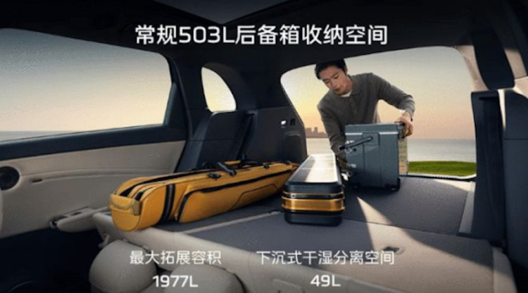 内饰典雅科技,中控及副驾双联屏可以提供丰富的显示及娱乐内容。该车搭载灵犀座舱,采用高通8295P芯片,可流畅支持四平联动不卡顿,并完美支持苹果carplay、华为Hicar等互联系统。三幅式方向盘采用双色搭配,前方的液晶仪表盘尺寸适中,显示信息丰富,该车还搭载有30寸的AR-HUD显示屏,驾驶信息获取更加轻松便捷。内饰提供有四种内饰颜色,分别为墨石黑、芳华红、秋实橙和林雪白。该车拥有31处储物空间,后备厢标准容积503L,最大可拓展至1977L,在后备厢下部,还有49L干湿分离的储物空间。