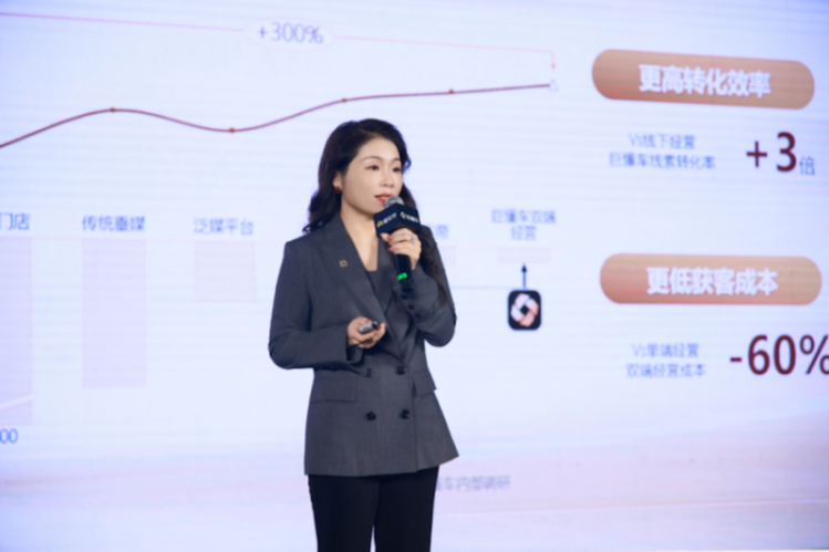 “如今,抖音日均汽车内容播放量达到8亿次,每10个深度购车用户就有6个在用懂车帝。巨懂车融合抖音和懂车帝的双端优质流量,通过抖音端的懂车云店和懂车帝端卖车通产品,构建起巨懂车OneSaaS一体化经营提效平台,帮助商家完成双端线索管理、双端经营、双端投放的全链提效。”郑文雅表示,“数据显示,巨懂车平台线索转化率较传统线下经营模式获客高出3倍,而商家通过巨懂车实现抖懂双端经营,较单端能够实现60%的经营成本下降。”