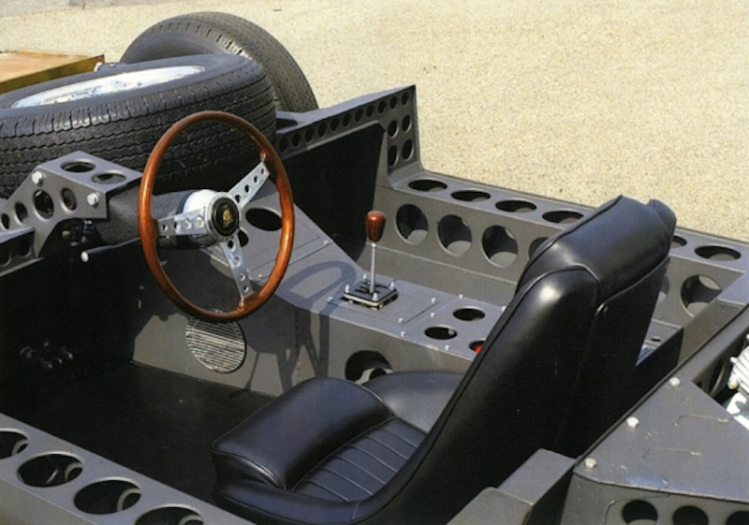 1965年11月3日都灵车展上,这副与350 GT及350 GTS同台亮相的底盘采用哑光黑(satin black)涂装,配以四根白色排气管。当时媒体报道称其为“整装待发的赛车骨架”,盛赞其技术配置的开创性。由Marchesi of Modena打造的结构采用0.8毫米钢板,经折叠钻孔工艺确保轻量化与刚度。中央承载式结构作为悬挂系统安装基座,前后辅助副车架则承载机械部件与悬挂系统。总重不超过120公斤,在当时堪称卓越成就。独立双横臂悬架、Girling制动盘与Borrani钢丝轮构成完整技术方案,这些源自赛道的技术此前从未见于公路版车型。