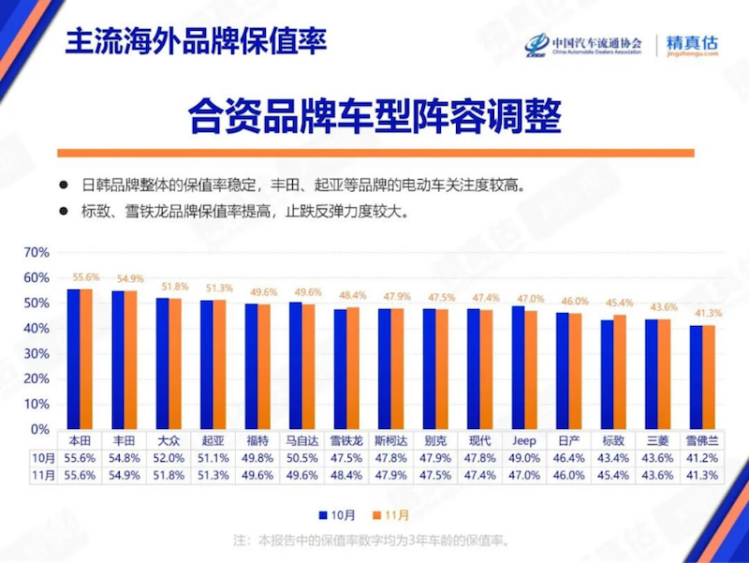 12月2日,中国汽车流通协会和精真估联合发布了《2025年11月中国汽车保值率研究报告》。通过保值率研究旨在反映品牌的产品力、认知度、美誉度等综合实力,对未来开展回购、置换、租赁、金融、新车定价参考等相关业务提供重要数据参考,从而降低业务风险,提升经营效率。