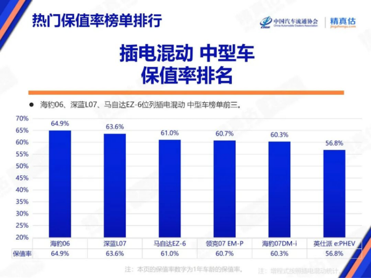 在插电混动中型车这一激烈的核心战场,各品牌通过技术内核的强烈支撑,获得在市场上的优势地位。比亚迪海豹06凭借其第五代DM技术实现的革命性低油耗与全能表现,保值率位列榜首。长安深蓝L07、马自达EZ-6位列第二、第三名。
