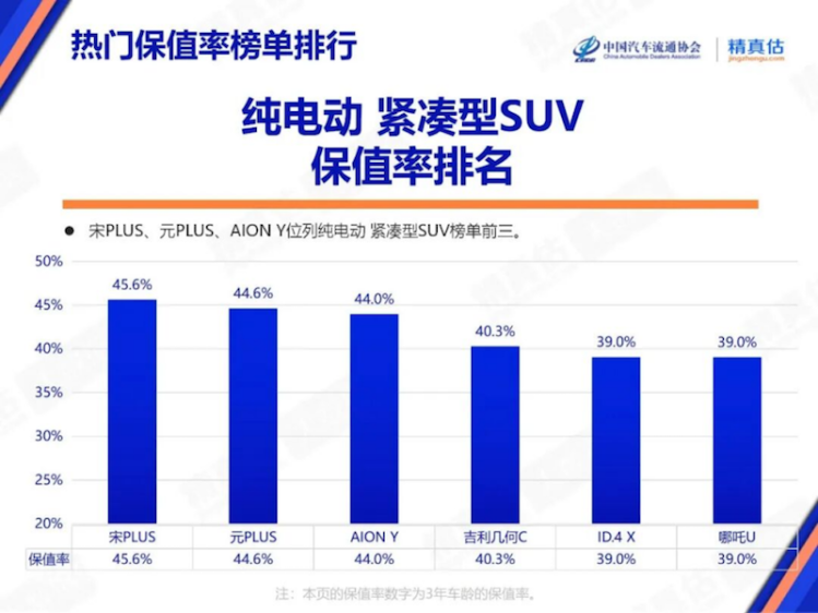 纯电紧凑型SUV市场已进入“持久战”阶段,短期噱头难以维持长期价值。纯电动紧凑型SUV级别中,BYD旗下的宋PLUS与元PLUS车型保值率排名靠前,位列前两位。这也表明,只有将先进技术转化为稳定可靠的用户体验,构建起强大的市场基本盘和品牌信任度,才能在漫长的价值竞赛中保持领先。