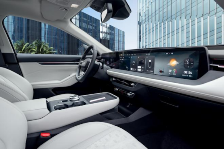 新车采用环抱式座舱,配同级最大屏幕——超1.1米的27英寸贯穿式液晶4K屏及12.3英寸仪表盘,以及采用悬浮式设计的中央扶手区,科技感十足。新车新增空调实体按键、50W无线手机充电位、开放式杯架、丹麦国宝级B&O品牌音响,以及新增座椅通风/加热、方向盘加热,车内大面积采用高品质超纤绒材质软性包裹,进一步提升舒适度。至尊型车型兼顾豪华与运动,座椅设计采用长条形穿孔方案,CNC高精度缝线从上部座椅靠背延伸至下部座垫,打造动感条纹造型。多米诺豪华纹理饰板与哑光铝镀铬元素的搭配,形成鲜明对比。优质麂皮与黑色饰板相得益彰,营造出温暖和优雅的氛围。