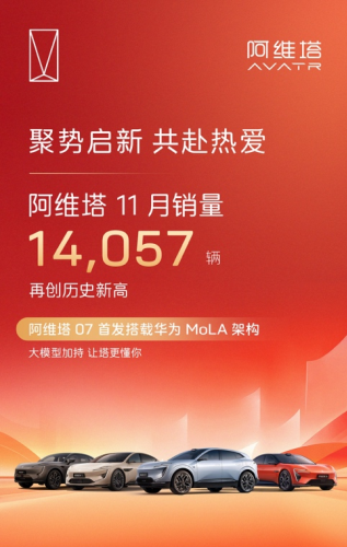 目前,阿维塔已完成“三年四车”产品布局,形成纯电与增程双动力全覆盖的产品矩阵,全面覆盖20万至70万元价格区间的主流豪华市场。截至目前,阿维塔已赢得超过22万用户的青睐,在刚刚过去的11月,单月销量达14,057辆,同比增长21%,已实现连续9个月销量破万,增长势能持续强劲。同时,阿维塔正加速推进全球化布局,目前已成功进入38个国家和地区。