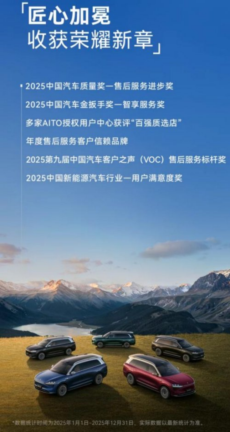 近日,在最新发布的杰兰路调研结果中,问界成功登顶新能源汽车品牌服务权益满意度榜首,售后服务能力指数更是在半年内跃升至行业第二。凭借卓越的服务体系与用户口碑,2025年问界在服务领域荣获五项行业重磅服务大奖,包括“2025中国汽车金扳手奖-智享服务奖”“2025第九届中国汽车客户之声(VOC+)售后服务标杆品牌”“2025 中国汽车质量奖”“售后服务进步奖”等权威荣誉,这不仅是对问界智享服务体系创新的最佳肯定,更彰显了问界以“全心全意为用户服务”为宗旨,在服务领域持续进化、不断精进。